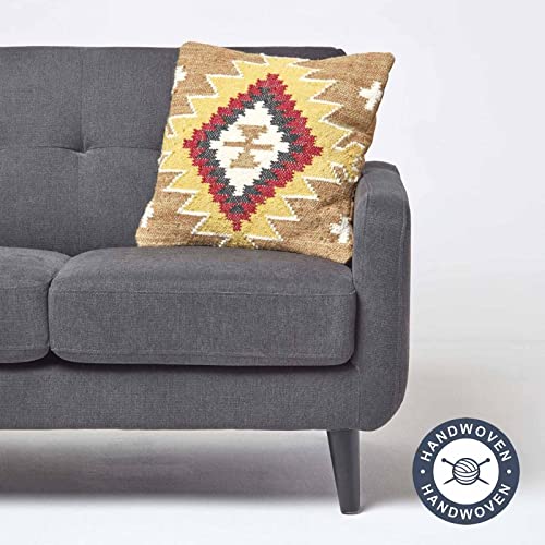 Für handgefertigte Kelim-Kissen von Homescapes werden Wolle und Baumwolle kunstvoll zu einer strukturierten Oberfläche mit traditionellem geometrischem Muster verwoben. Die einfarbig weiße Abseite aus 100 % Baumwolle ist mit einem praktischen Reißverschluss ausgestattet. Das exklusive Design in charakteristischen Farben verleiht jedem Universum ein besonderes Flair.