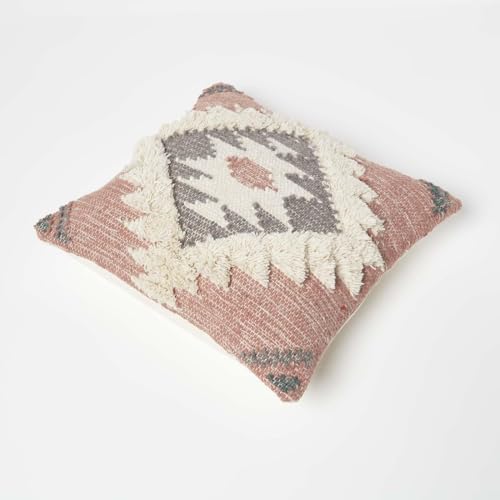 Das strukturierte geometrische Muster in zurückhaltenden Farben setzt dekorative Akzente in jedem All und verleiht Ihrer Einrichtung einen charmanten Boho-Quäntchen. Die Kissen-Abseite ist einfarbig cremeweiß gehalten.