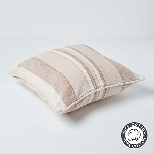 Gestreifter Kissenbezug mit verdecktem Reißverschluss aus 100% Baumwolle. Größe: ca. 45 x 45 cm, Farbe: beige.