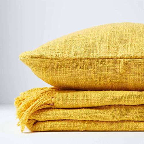 Stilvoller Kissenbezug in Knoten-Optik aus 100% Baumwolle. Größe: ca. 60 x 60 cm, Farbe: gelb.