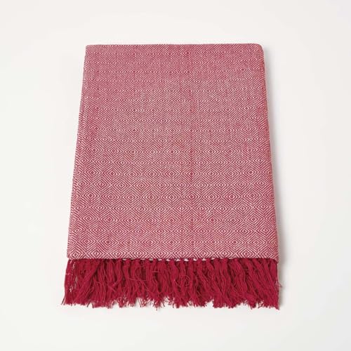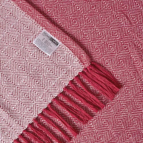 Homescapes Malda Baumwolldecke 150×200 cm rot, Überwurf-Decke Rautenmuster, Couchdecke mit Fransen
