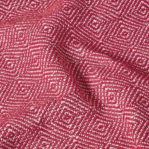 Hochwertige Wohndecke mit Fransen und dezentem geometrischem Muster alle 100% Baumwolle. Größe ca.: 150 x 200 cm. Farbe: Rot.