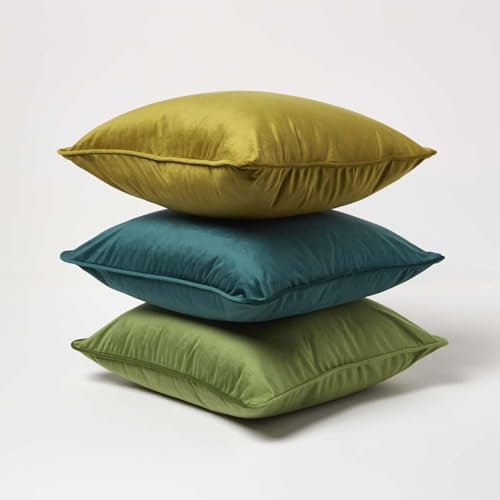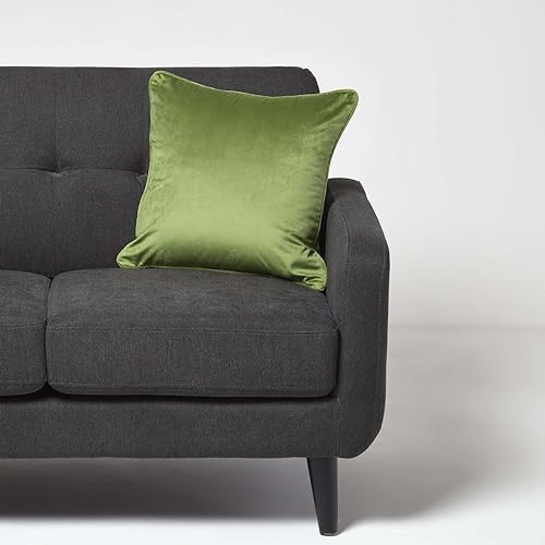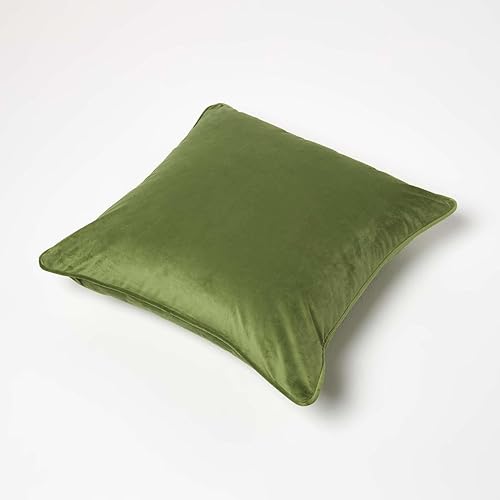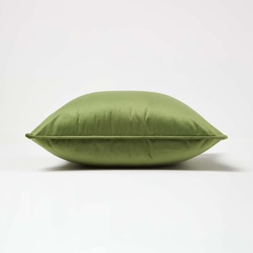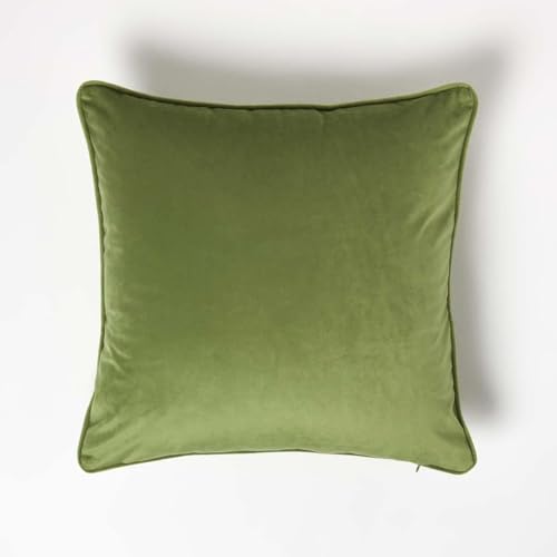 Hochwertiger einfarbiger Samt-Kissenbezug mit umlaufender Paspel und verdecktem Reißverschluss. Größe ca.: 46 x 46 cm. Farbe: Olivgrün.