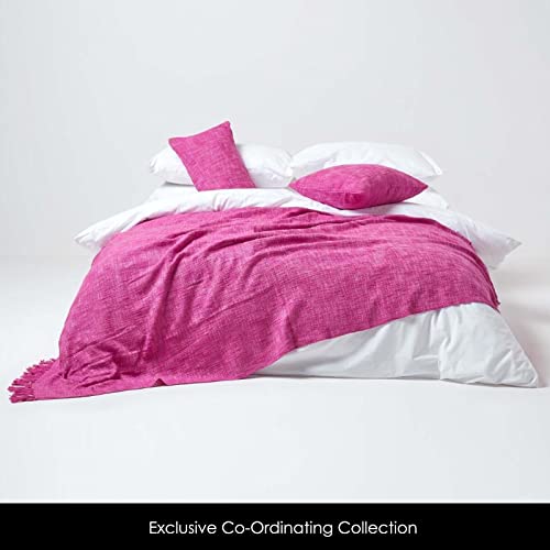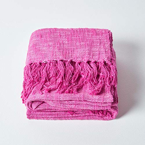 Unifarbene Wohndecke in Knoten-Optik mit Fransen. Größe: ca. 150 x 200 cm, Farbe: pink/dunkelrosa.