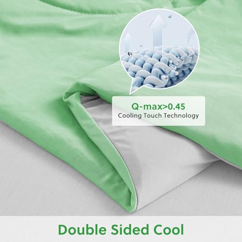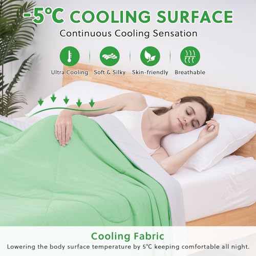HOMFINE Kühldecke Doppelseitig Kühlende Decke – Leichte Kühldecke für Menschen Q-Max > 0,4 Sommerdecke Kühlend Selbstkühlende Decke Sommer Decke Cooling Blanket für Bett, Grün, 130 x 180 cm