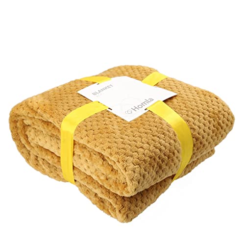 HOMLA Noah Decke Dekorativ Weich – Kuscheldecke Lose Polyesterfasern Wohndecke Flauschige Decke für Sofa Couch Bett – 150 x 200 cm Reiskornmuster Senffarbe