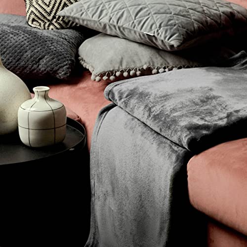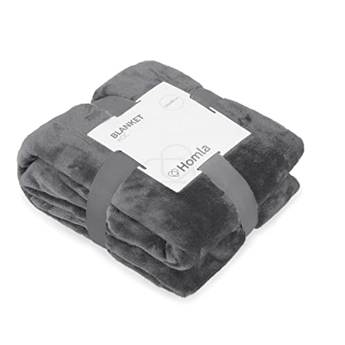 HOMLA Rote Fleecedecke Flauschig und Warm – für Couch Sofa und Bett Kuscheldecke Sofadecke Wohndecke – Pflegeleicht 150 x 200 cm Grau