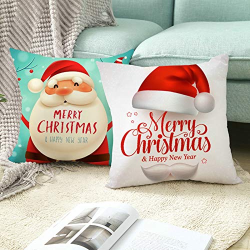 Homxi Kissenbezug Deko Weihnachten 40×40,Kissenbezug Polyester Weihnachtsmann Schneeflocken,Dekokissen Christmas Rot Blau