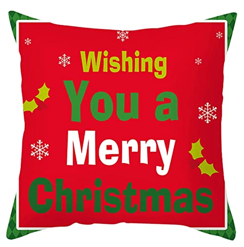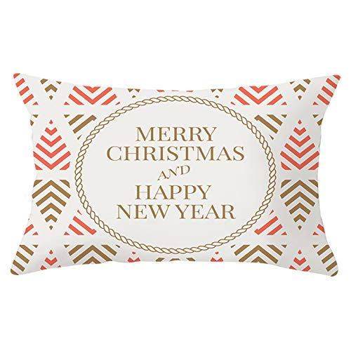 Homxi Kissenhülle Weihnachten 30×50,Kissenhüllen Polyester Dreiecke mit Streifen Merry Christmas and Happy New Year,Dekokissen Christmas Weiß Rot Braun