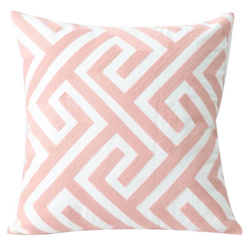 Elegante Stickerei-Details: Mit aufwendigen gestickten geometrischen Wellen und klassischen griechischen Schlüsselmustern verleihen diese Kissenbezüge alle Umgebung einen stilvollen, minimalistischen Touch.