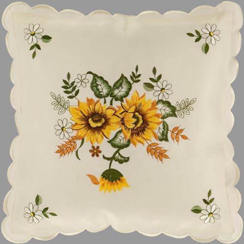Bestickte Kissenhülle mit Sonnenblumen, Dekokissen für Sommer und Herbst auf Bett, Couch, Sessel oder Lounge