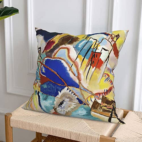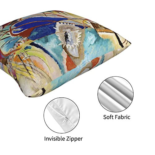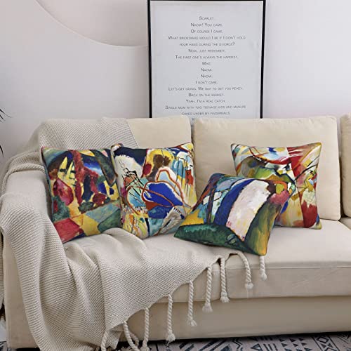 HOSTECCO Wassily Kandinsky Abstrakte Kissenbezüge 45×45 cm 4er Set Landschaft mit Zwei Pappeln Das Wasserfallgemälde Dekorative Kissenbezüge für Sofa Couch