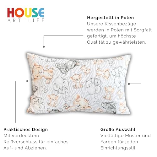 🧸HOCHWERTIGES MATERIAL: HOUSE ART LIFE Kinder Kopfkissenbezug besteht sämtliche leichtem Baumwollstoff – ist weich, atmungsaktiv und bequem. Perfekt zum Schlafen. Sie ist maschinenwaschbar.