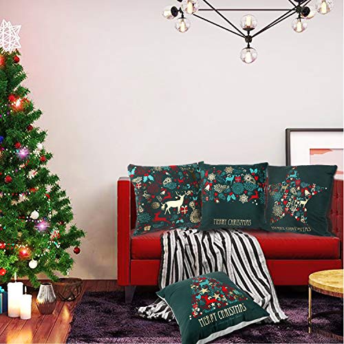Elegante Weihnachts-Kissenbezüge – Weihnachts-Kissenbezüge enthalten 4 grüne Weihnachts-Kissenbezüge, elegantes Weihnachts-Muster: Rentier, Weihnachtsbaum, Schneeflocke, Schneemann, Glöckchen, Weihnachtskugel, Geschenk, Weihnachtskranz, Feuerwerk, Stern, Schneekugeln, Blumenspitze usw. Kissenbezüge mit Hilfe von der Aufschrift „Merry Christmas“, Größe: 45 x 45 cm.