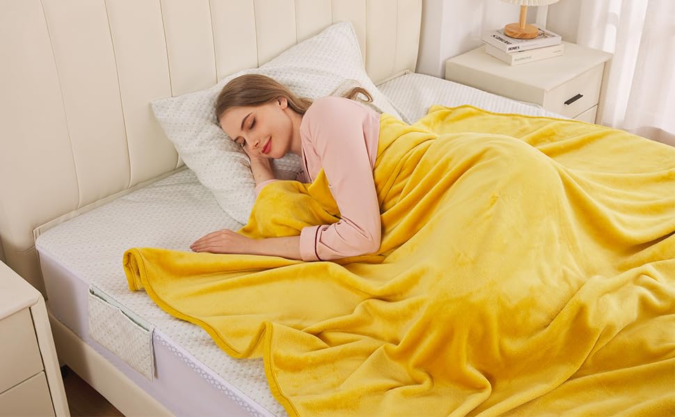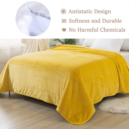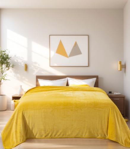 HOZY Kuscheldecke Flauschig Decke Fleecedecke – Kuscheldecke 220x240cm, Gelb, XXL Fleecedecke Sofa Decken,Warm Wohndecke Couchdecke Hundedecke Sofadecke flauschig, Sofa überwurfdecke