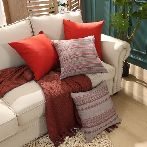 Dekorative Couch-Kissenbezüge: (Kissen nicht im Lieferumfang enthalten) 4er-Set, 45,7 x 45,7 cm und 43,2 x 43,2 cm Kissen werden empfohlen, 2 gestreifte und 2 einfarbige Kissenbezüge sind in diesem Set enthalten, damit Sie Ihre eigene Dekorationskombination erstellen können. Hinweis: 2,5 cm Abnormalität aufgrund manueller Herstellung möglich