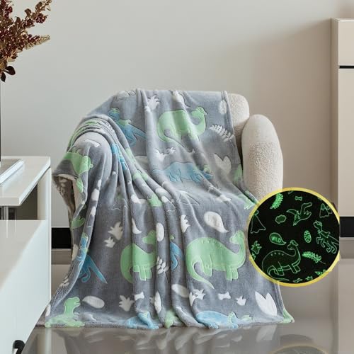 🔥【Leuchtendes Design】Genieße süße Träume mit dem Nachthimmel! Flauschige Decke mit Dinosaurier-Muster leuchtet im Dunkeln und schafft eine wunderbare Atmosphäre in Ihrem Schlafzimmer.Die Decke wird aufgeklappt, in die Sonne oder helle Lichtquelle für 5-10 Minuten gelegt und folglich an einem dunklen Ort platziert, wird sie leuchten, außerordentlich magisch und interessant.