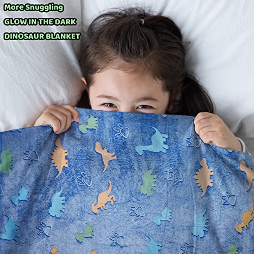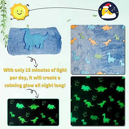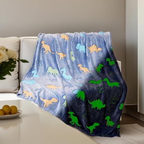 🔥【Leuchtendes Design】Genieße süße Träume mit dem Nachthimmel! Flauschige Decke mit Dinosaurier-Muster leuchtet im Dunkeln und schafft eine wunderbare Atmosphäre in Ihrem Schlafzimmer.Die Decke wird aufgeklappt, in die Sonne oder helle Lichtquelle für 5-10 Minuten gelegt und folglich an einem dunklen Ort platziert, wird sie leuchten, besonders magisch und interessant.