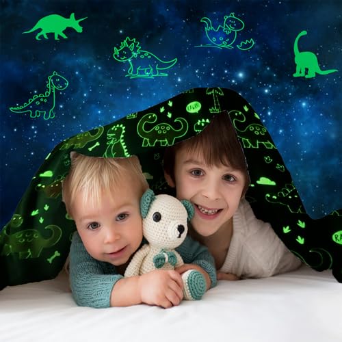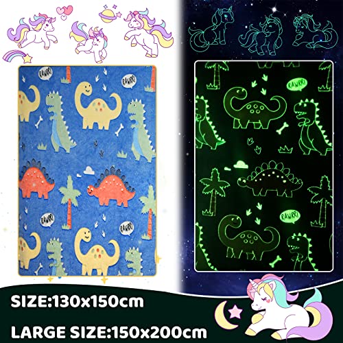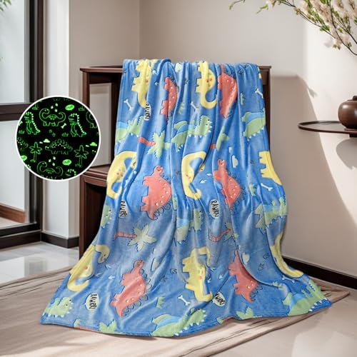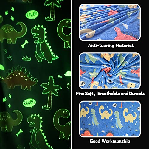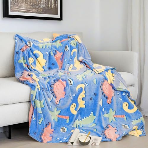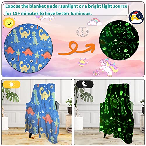 🔥【Leuchtendes Design】Genieße süße Träume mit dem Nachthimmel! Flauschige Decke mit Dinosaurier-Muster leuchtet im Dunkeln und schafft eine wunderbare Atmosphäre in Ihrem Schlafzimmer.Die Decke wird aufgeklappt, in die Sonne oder helle Lichtquelle für 5-10 Minuten gelegt und folglich an einem dunklen Ort platziert, wird sie leuchten, außergewöhnlich magisch und interessant.