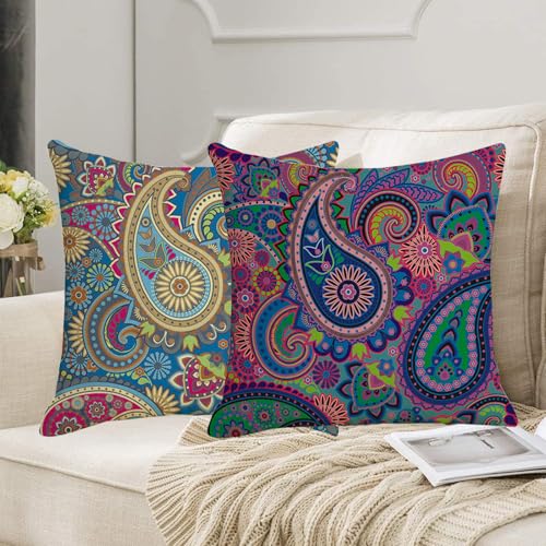 【Einzigartiges Design】Dekorativer Kissenbezug ist ein originelles Design, das ein stilvolles und orientalisches Vintage-Muster auf natürlichem Leinenhintergrund aufweist. Ein Textilstoff mit einem interessanten und farbenfrohen Tribal-Design. Passt o. k. zu Dekoren kanischen, ethnischen, Retro- und Shabby Chic-Stil.