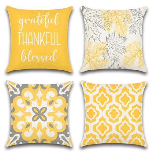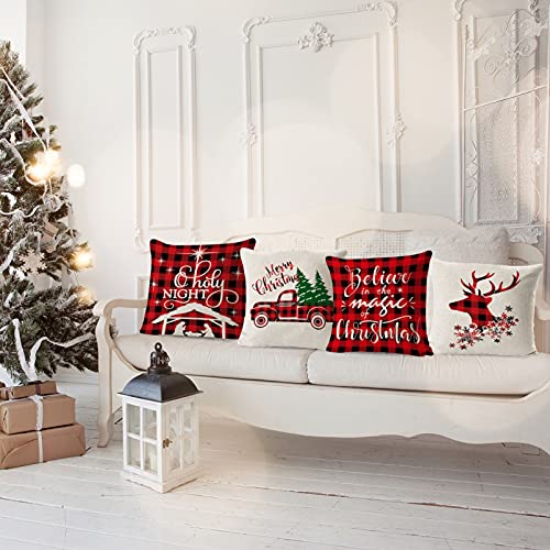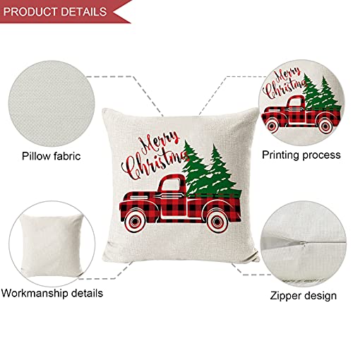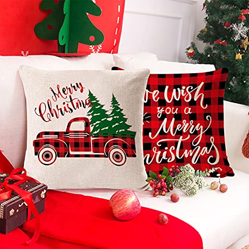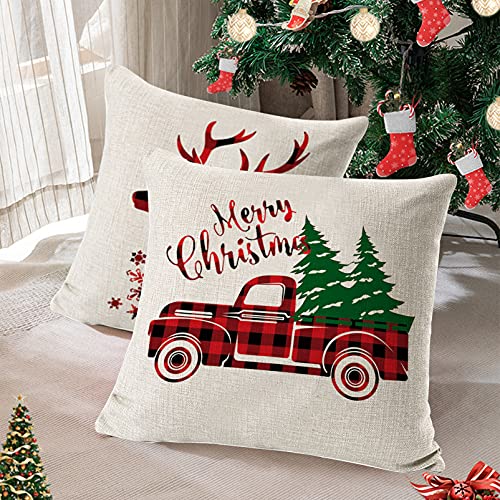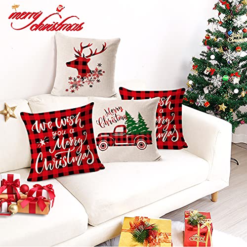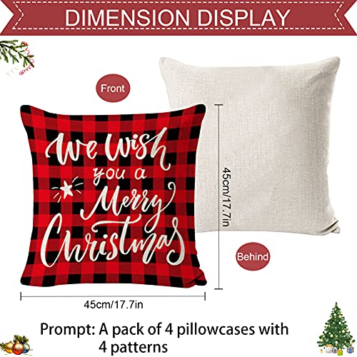 Huahuanghui Kissenbezug Weihnachten, 4 Stück 45×45 cm, Frohe Weihnachten Leinen Dekokissen Kissenhülle für Wohnzimmer Schlafzimmer