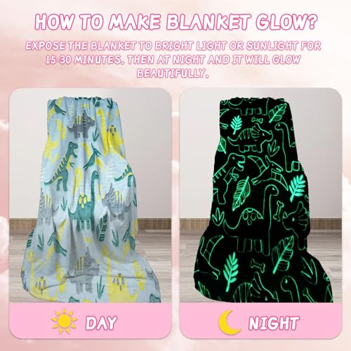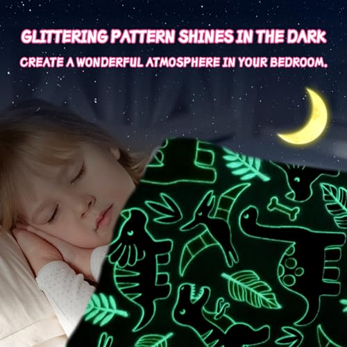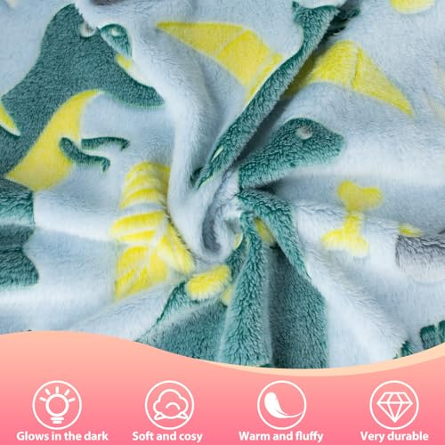 HZVRTN Kuscheldecke Kinder Einhorn/Dinosaurier/Weltraum Decke, kuscheldecke leuchtet im Dunkeln, warme Decke Flauschige Geschenke für Jungs mädchen Sofa Kinderdecke (Dinosaurier A, 150x200cm)
