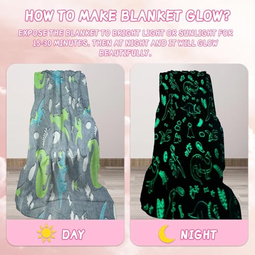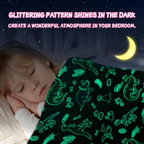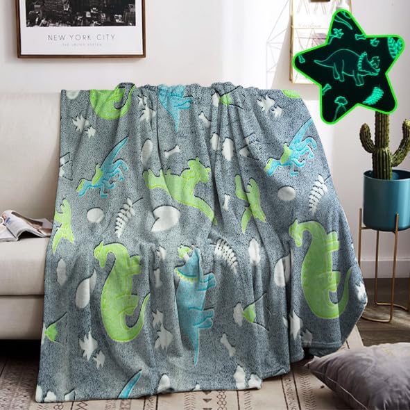 HZVRTN Kuscheldecke Kinder Einhorn/Dinosaurier/Weltraum Decke, kuscheldecke leuchtet im Dunkeln, warme Decke Flauschige Geschenke für Jungs mädchen Sofa Kinderdecke (Dinosaurier B, 130x150cm)