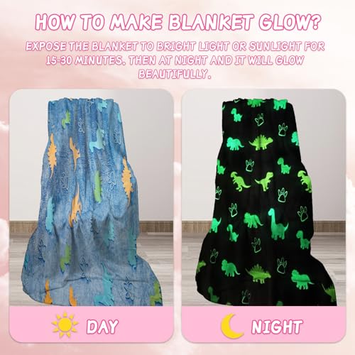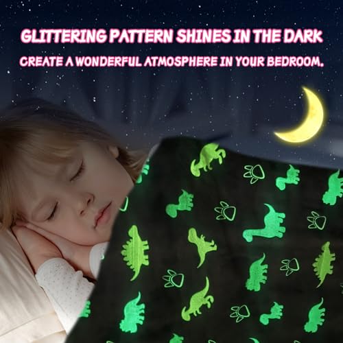 HZVRTN Kuscheldecke Kinder Einhorn/Dinosaurier/Weltraum Decke, kuscheldecke leuchtet im Dunkeln, warme Decke Flauschige Geschenke für Jungs mädchen Sofa Kinderdecke (Dinosaurier D, 150x200cm)