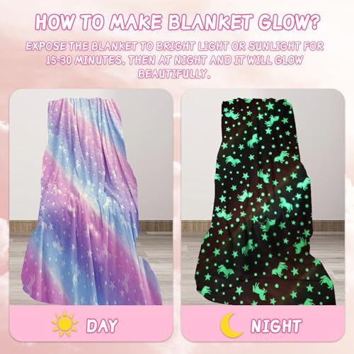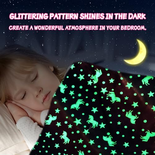 HZVRTN Kuscheldecke Kinder Einhorn/Dinosaurier/Weltraum Decke, kuscheldecke leuchtet im Dunkeln, warme Decke Flauschige Geschenke für Jungs mädchen Sofa Kinderdecke (Einhorn A, 150x200cm)