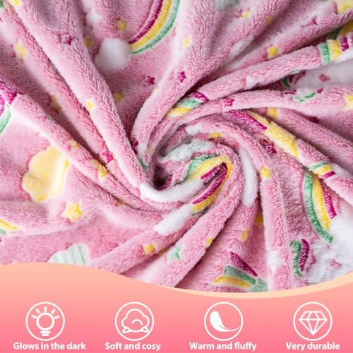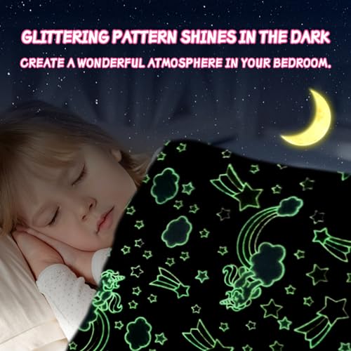 HZVRTN Kuscheldecke Kinder Einhorn/Dinosaurier/Weltraum Decke, kuscheldecke leuchtet im Dunkeln, warme Decke Flauschige Geschenke für Jungs mädchen Sofa Kinderdecke (Einhorn D, 130x150cm)