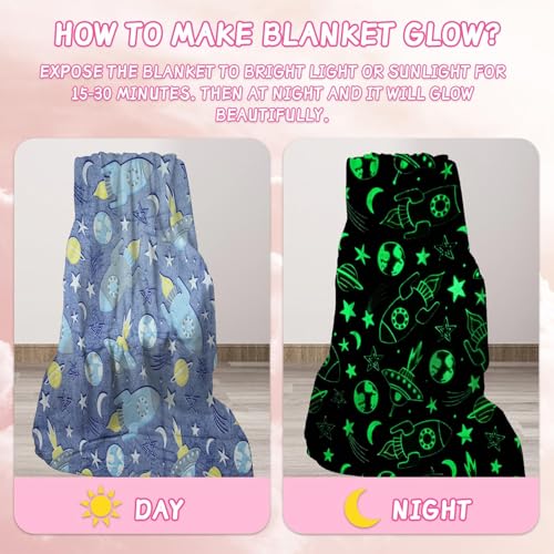 【Leicht Und Weich Material】Kuscheldecke Leuchtende besteht sämtliche hochwertigem Flanell, welches weich und leicht ist,weicher, bequemer und glatter wird,Super weich und flauschig, gemütlich. Diese leuchtende Decke bietet Kindern ein superweiches und angenehmes Hautgefühl, wodurch sie sich warm und umarmt fühlen.