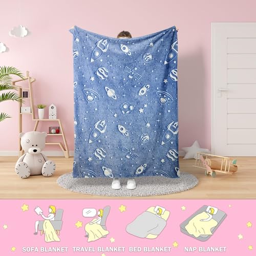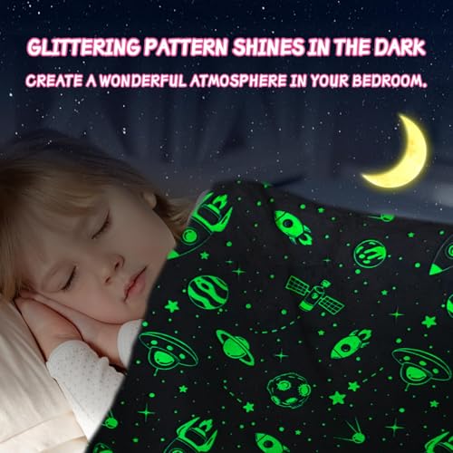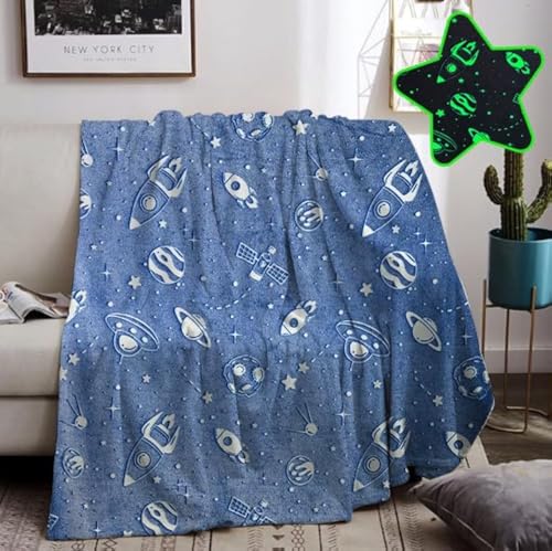 HZVRTN Kuscheldecke Kinder Einhorn/Dinosaurier/Weltraum Decke, kuscheldecke leuchtet im Dunkeln, warme Decke Flauschige Geschenke für Jungs mädchen Sofa Kinderdecke (Galaxy C, 150x200cm)