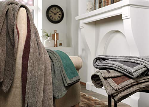 Ibena Aberdeen Kuscheldecke 150×200 cm – Decke grau grün mit elegantem Fischgratmuster, dicht gewebte und wärmende Wolldecke