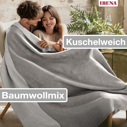 Ibena Austin Kuscheldecke 150×200 cm – hellgraue Decke, Pflegeleichte und kuschelweiche Baumwollmischung