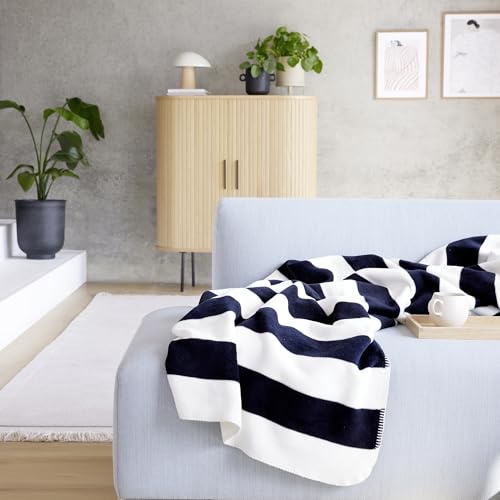 Ibena Decke 150×200 cm – Baumwollmix, Made in Germany, warm & waschbar, Kuscheldecke schwarz weiß gestreift