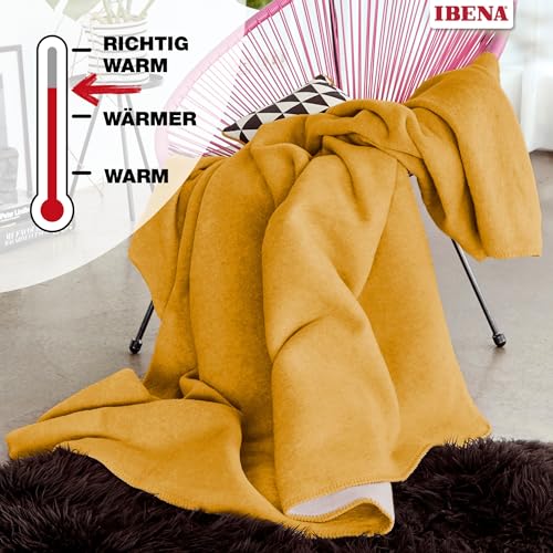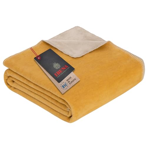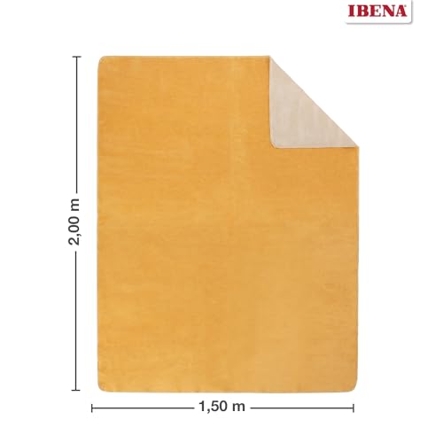 Ibena Dublin Decke 150×200 cm – Baumwollmix kuschelig, warm & waschbar, Wendedecke gelb Natur