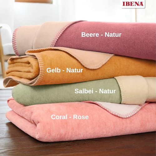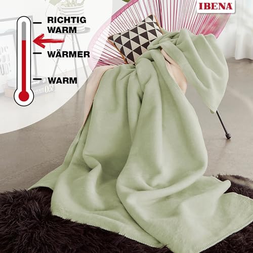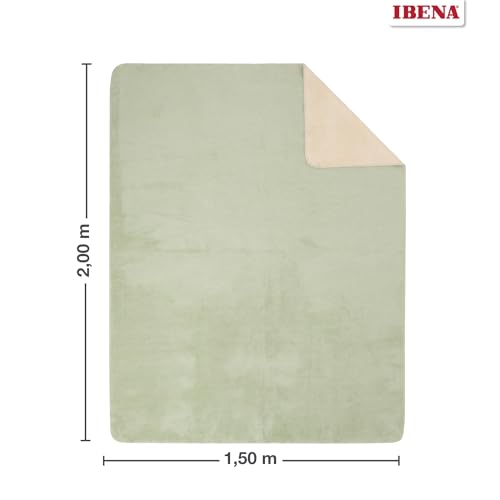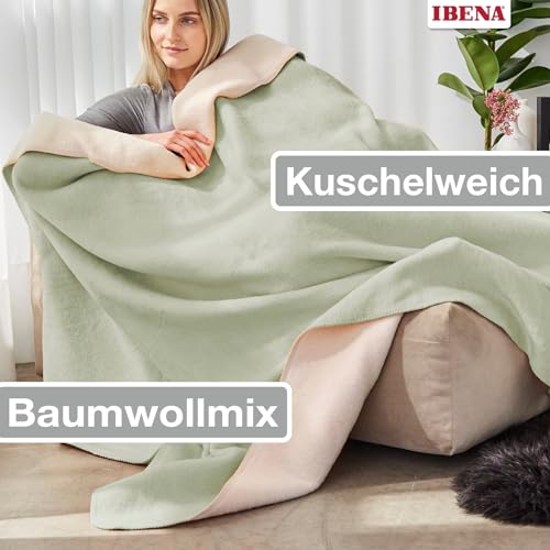 Ibena Dublin Decke 150×200 cm – Baumwollmix kuschelig, warm & waschbar, Wendedecke Salbei Natur