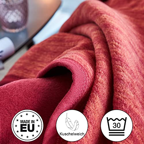 Ibena Fano Kuscheldecke 150×200 cm – Wohndecke rot orange, tolle Wendedecke aus hochwertiger Baumwollmischung, kuschelweich und angenehm warm