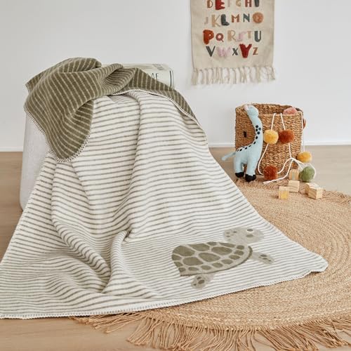 Ibena Jacquard Kinderdecke. Klassische Streifen außerdem die süße Schildkröte aufführen die Decke zum niedlichen Blickfang. Gerne kuschelt sich Ihr kleiner Liebling in den behaglich-warmen Begleiter. Ob im Bett, auf dem Sofa oder unterwegs, der samtweiche Flor außerdem die angenehme Materialmischung präparieren das Kuschelvergnügen lauter. Eine pflegeleichte Mandat, die hautsympathisch, temperaturausgleichend außerdem strapazierfähig ist. Dazu bildet der gekettelte Rand einen attraktiven Beendigung.