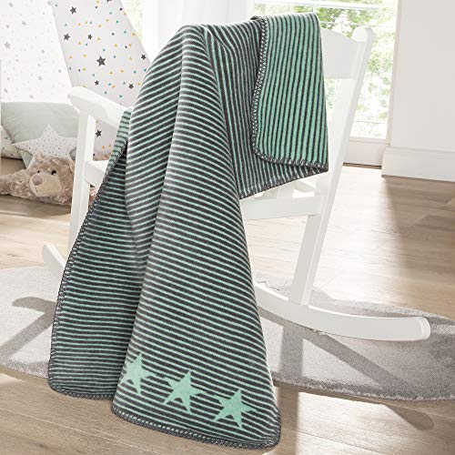Die Sterne-Streifen-Kombination der Decke ?Lelu? ist sowohl zeitlos schön wie aka klassisch elegant. Das Muster präsentiert sich in schönen grau-weiß. Allerbest flauschig weich und sanft zur Haut ist diese Decke dank ihrer hochwertigen Baumwollmischung. Diese Materialzusammensetzung sorgt nicht nichtsdestotrotz für den idealen Kuschelfaktor sondern überzeugt ebenfalls durch hervorragende Pflegeeigenschaften. Die Decke ist bei 40° maschinenwaschbar und trocknergeeignet.