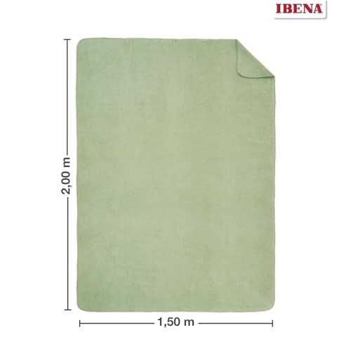 Ibena Malaga Bio Wolldecke 150×200 cm – 100% Baumwolle, Made in Germany, Baumwolldecke grün