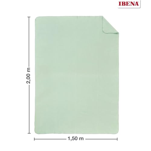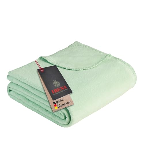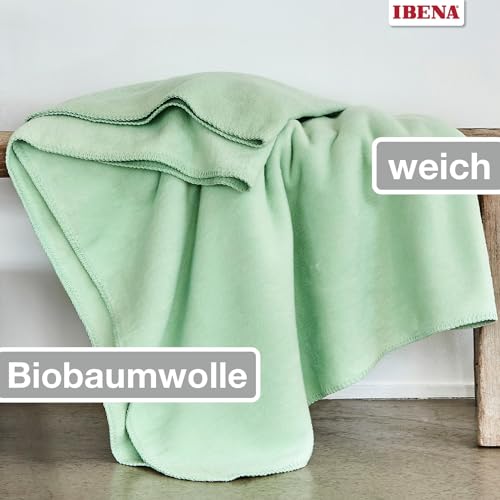 Ibena Malaga Bio Wolldecke 150×200 cm – 100% Baumwolle, Made in Germany, Baumwolldecke hellgrün