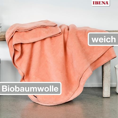 Ibena Malaga Bio Wolldecke 150×200 cm – 100% Baumwolle, Made in Germany, Baumwolldecke lachs