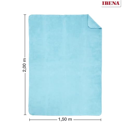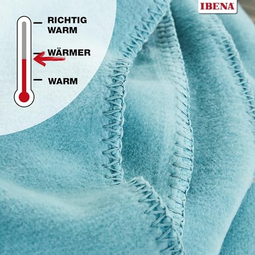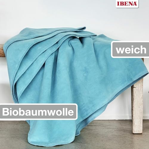Ibena Malaga Bio Wolldecke 150×200 cm – 100% Baumwolle, Made in Germany, Baumwolldecke türkis