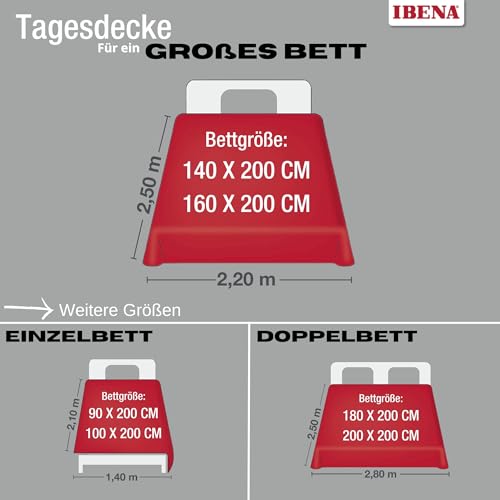 PASSFORM: Die gesteppte luxus Tagesdecken in 220×250 cm passen optimal auf mittlere Betten in der Größe 140×200 oder 160×200 cm. Sie reicht folglich an allen Seite bis zum Boden