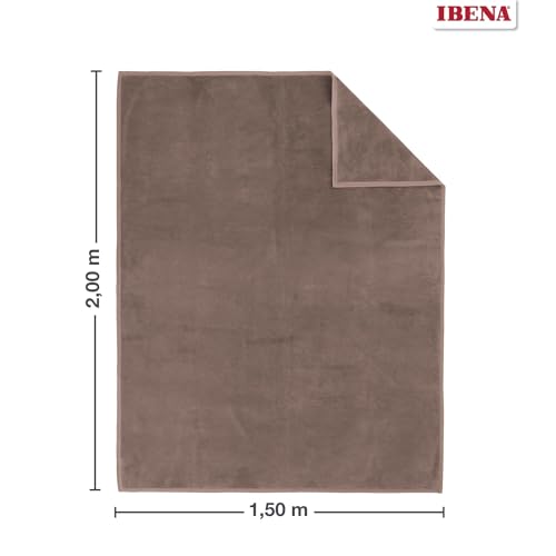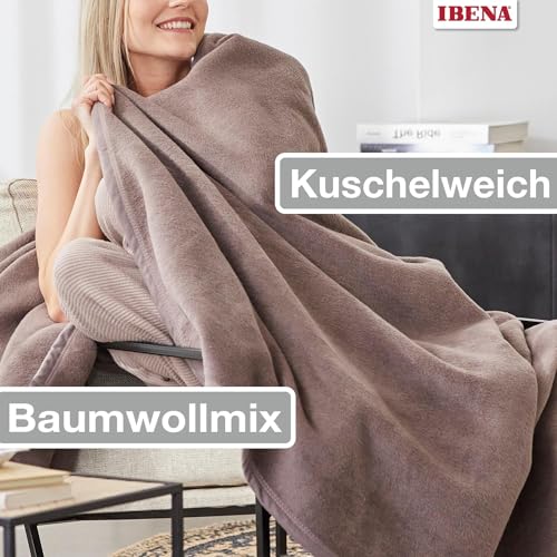 Ibena Porto Decke 150×200 cm – Baumwollmix weich, warm & waschbar, Kuscheldecke taupe einfarbig