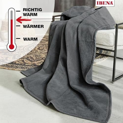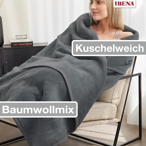 Ibena Porto Knieschoner 100×150 cm – Kinderdecke dunkelgrau aus Baumwollmischung, kleine Flauschige weiche und angenehm warme Decke