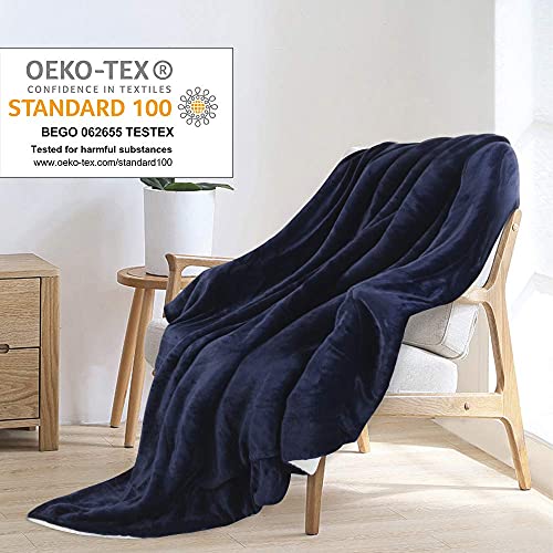 i@HOME Kuscheldecke Marineblau 150×200 cm,OekoTex weiche & warme Fleecedecke Kuscheldecke, flauschig und plüsch Fleecedecke als Sofadecke Couchdecke Wohndecke