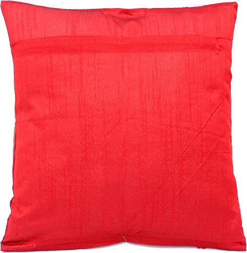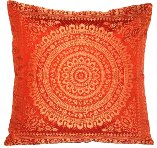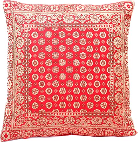 Indische Banarasi Seide Kissenbezug, Zierkissenbezug, Sofakissenbezug, Dekokissen, Zierkissen – 40×40 cm | 16×16 Zoll ***Handgewebt und Handgefertigt aus Kaschmir-Indien*** (Rot)