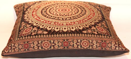 Größe: 1 x Indische Banarasi Seide Kissenbezug 40 cm x 40 cm mit Reißverschluss